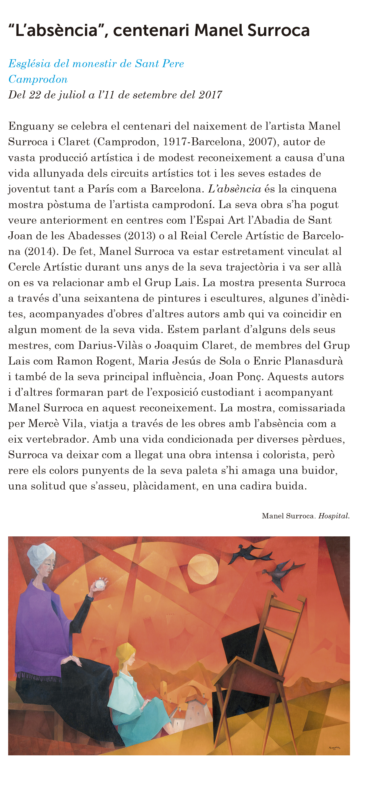 22 de juliol, a les 12 hores.Inauguració de l'exposició 'L'absència' i presentació del llibre 'Malgrat l'absència, el color'